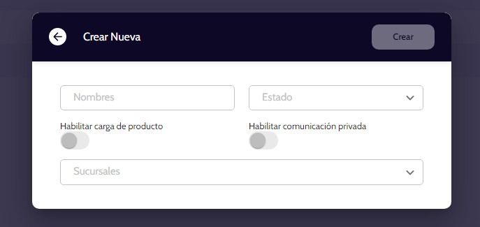 • Sucursales: esta opción no es obligatoria, sin embargo, debes tener presente que para las sucursales deben estar creadas con anterioridad.