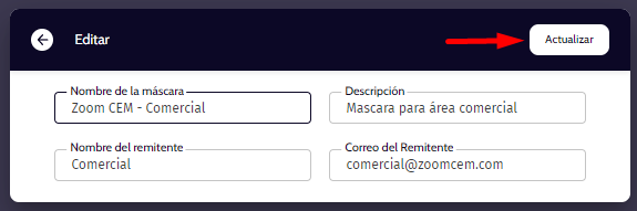 Paso 2: Ingreso a configuración de mascaras de email