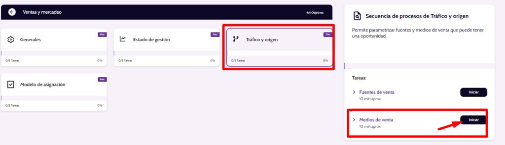 - Ingresar al módulo “Ventas y Mercadeo” y selecciona la tarjeta “Trafico y Origen”