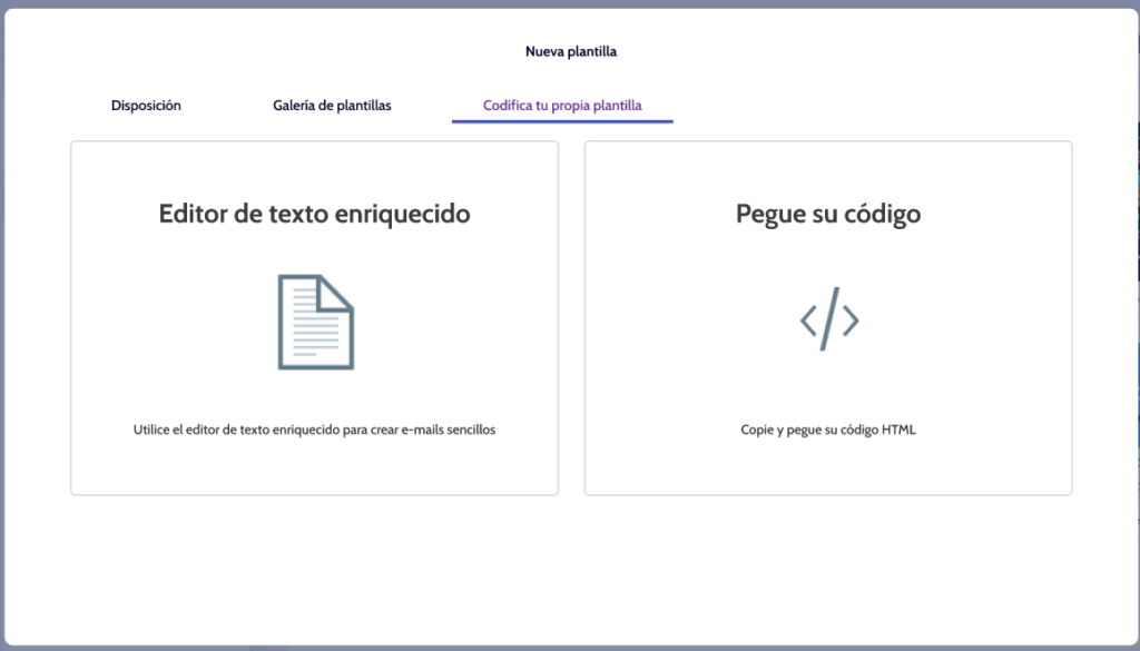 • Pegue su Código: Esta opción te permite realizar la creación de tu plantilla por medio de Código HTML