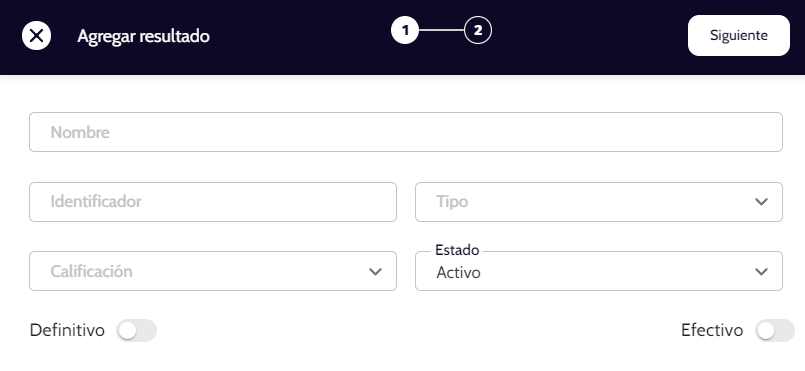 Completa los campos en el formulario de creación de resultados de la siguiente manera: