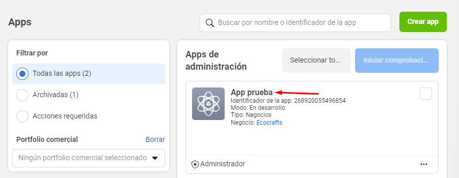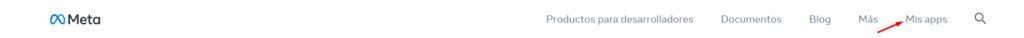 1. Ingresa a https://developers.facebook.com/, inicia sesión y dirígete a la sección “Mis Apps” que encontraras en la parte superior derecha.