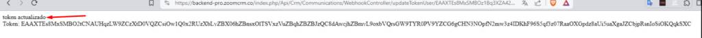 8. Se debe ejecutar un método que reemplazará el token registrado anteriormente en el CRM, por un token de larga duración, para esto debemos ir al navegador y poner la siguiente URL para ejecutar el método: dominio.verzia.io/index.php/Api/Crm/Communications/WebhookController/updateTokenUser/. NO olvidescambiar el dominio y poner el token configurado en la app de Facebook en Verzia (deberas ponerlo desdues de “updateTokenUser/”), este proceso tendrá que devolver un mensaje de “token actualizado”, de lo contrario se tendrá que ver el problema.