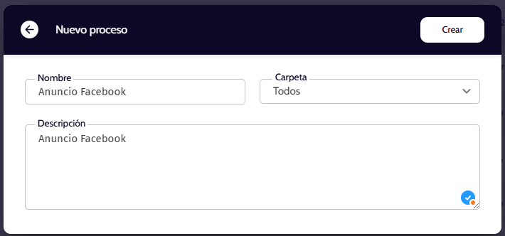 1. Ingrese a la ruta Automatizaciones > Flujos de automatización > Procesos, y da clic en la opción “Nuevo proceso”