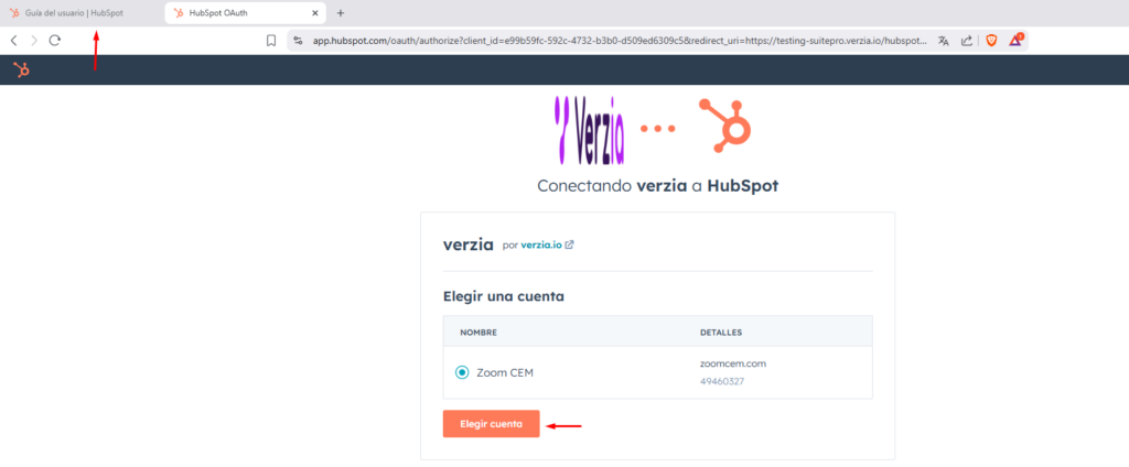 Conexión Hubspot con Verzia