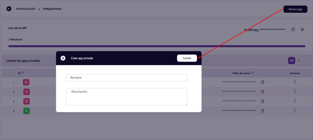 II. Crea una nueva app definiendo un nombre y una descripción